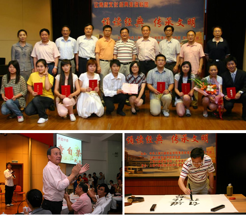 为弘扬祖国经典诗文,传承中华精神文化,学院“诵读经典 传承文明”中华经典诵读大赛于近日隆重拉开帷幕。学院党委书记徐炽强、副院长蔡红以及各系部负责人应邀出席。大赛特邀曾在《佐罗》等译制片中有过出色演出的著名配音演员童自荣担任嘉宾评委。此次大赛,各系经过近1个月的前期组织和选拔,最终共有12支队伍参赛。各参赛队在服装、舞台、表演等方面精心准备,在视觉和听觉方面为在场师生带来了一场高水准的演出。同时,学院民乐队的精彩表演也为大赛增添了几分民族文化色彩,这是学院民乐团自成立以来第一次正式亮相。最终,计算机2队的节目《致橡树》获得大赛一等奖,人文2队与计算机3队并列第二,三等奖由人文1队、计算机1队以及学前3队获得,学前2队和经管2队获得优胜奖。大赛中,党委书记徐炽强现场题写学院校训,勉励学生珍惜在校时光,“进德修业,自强不息”。(党委宣传部 学生处)