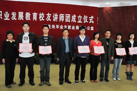 职业发展教育校友讲师团的成立是学院加强内涵管理的重要一步,将优秀毕业生的智慧融入教育,带动和帮助学生更好的择业、就业乃至创业,是学院工作又一个创新。学院将通过优秀毕业生与学生的访谈、优秀毕业生集锦、优秀毕业生创业故事等系列方式扩大影响。(党委宣传部、毕业办)