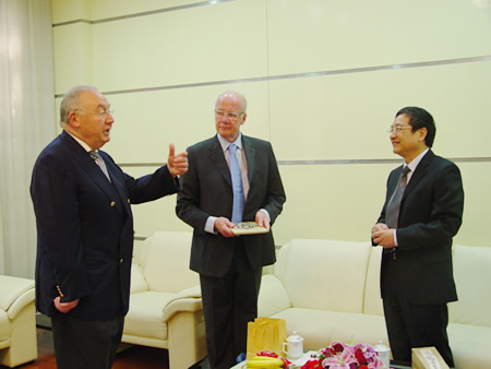 近日,法国亚眠商学院院长穆德良先生和伊萨学院院长布佐先生一行来学院访问。学院党委书记徐炽强、院长袁允伟分别与法方客人进行了会谈,并带领法方宾客参观了学院艺术创意中心。中心收藏的艺术作品给法方宾客留下了深刻的印象。其后,袁院长与法方领导共同会见了中法合作专业一年级的学生,并与学生进行了互动,对学生未来的学习发展提出了要求和建议。伊萨学院院长还为今年准备赴法留学的同学进行了面试。(经管系)