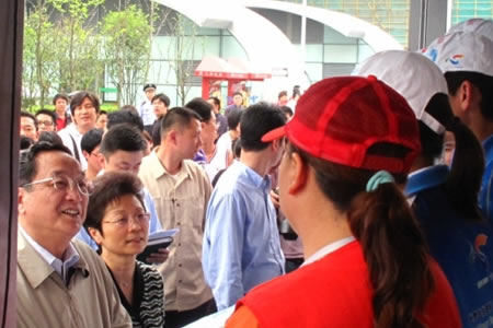 6月11日下午,市委书记俞正声来到上海火车站北广场视察,并在城市志愿者服务站前与学院志愿者亲切交谈。俞正声书记问及同学们是哪个学校的,学生们自豪地答道:“行健学院”。在一旁陪同的闸北区区长详细介绍了学院的性质、特色,给俞正声书记留下了深刻的印象。俞书记还风趣地向志愿者询问道:“我们要去世博园什么时候比较合适呀?”志愿者们熟练的回答,得到在场各界人士的好评。最后俞书记向志愿者同学表示深切的慰问和真挚的感谢。朴实的话语,亲切的态度,真挚的情感让志愿者们深受感动,表示要克服一切困难,为精彩世博、平安世博贡献力量。(团委、人文系)