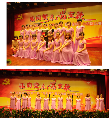 为纪念建党90周年,用歌声讴歌建党90周年以来取得丰功伟绩,颂扬改革开放的伟大成果,祝福伟大祖国永远繁荣昌盛,学院工会在学前教育系和团委的大力支持下,组团参加了由闸北区教育工会和闸北区教育基金会举办的“我向党来唱支歌”——闸北区教育系统第二届“市北杯”教职工合唱比赛,经过激烈角逐,我院参赛队荣获A组金奖。(工会)