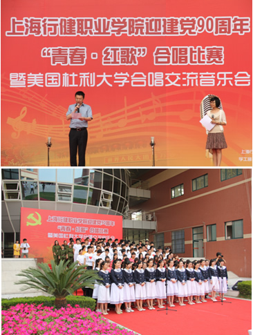 5月30日下午,行健学院歌声嘹亮,由学工部、团委、学前系联合主办的上海行健职业学院迎建党90周年“青春 红歌”合唱比赛暨美国杜利大学合唱音乐交流会在体育馆隆重举行。学院党委书记黄群、院长袁允伟、党委副书记马毅鑫以及来自各部门的负责人参加了此次活动。此次活动分两幕。