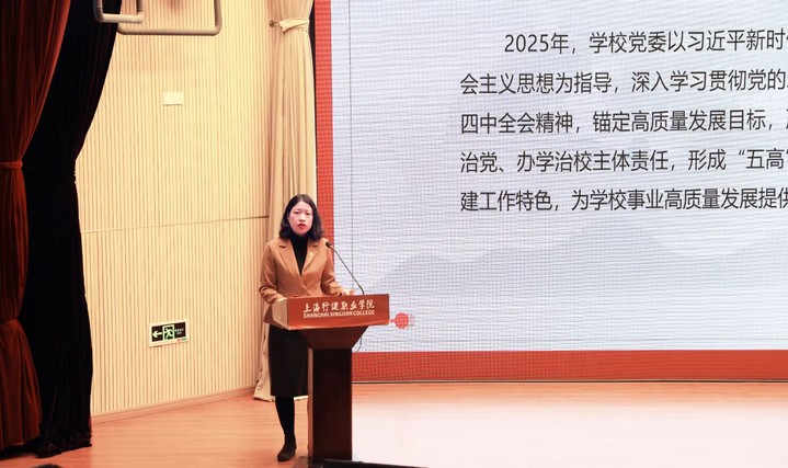 随后,党委组织部、宣传部、统战部、教师工作部、学生工作部依次汇报2026年度重点工作,各部门紧扣学校“行文化”核心理念,推出一系列特色工作举措:组织部以“先锋行”专项行动为核心,推动党建从“有形覆盖”向“有效覆盖”转变,鼓励支部跨界共建,让党员先锋作用在育人实践中落地;宣传部实施“声行弘远”计划,从阵地提质、能力升级、内外联动三方面优化宣传体系,打造“行文化”专属IP;统战部以“同心行”为统领,通过“同舟行”“智汇行”“团结行”抓实各群体思想引领,凝聚统战力量服务学校发展;教师工作部构建师德考核闭环体系,推动师德考核由“软约束”向“硬指标”转变,为培养德技并修的高素质技术技能人才提供坚实师资保障;学生工作部重点推进“班班行”班风建设,同步落地“菁彩行”团学品牌建设等工作,以班风建设撬动校园文化生态优化。