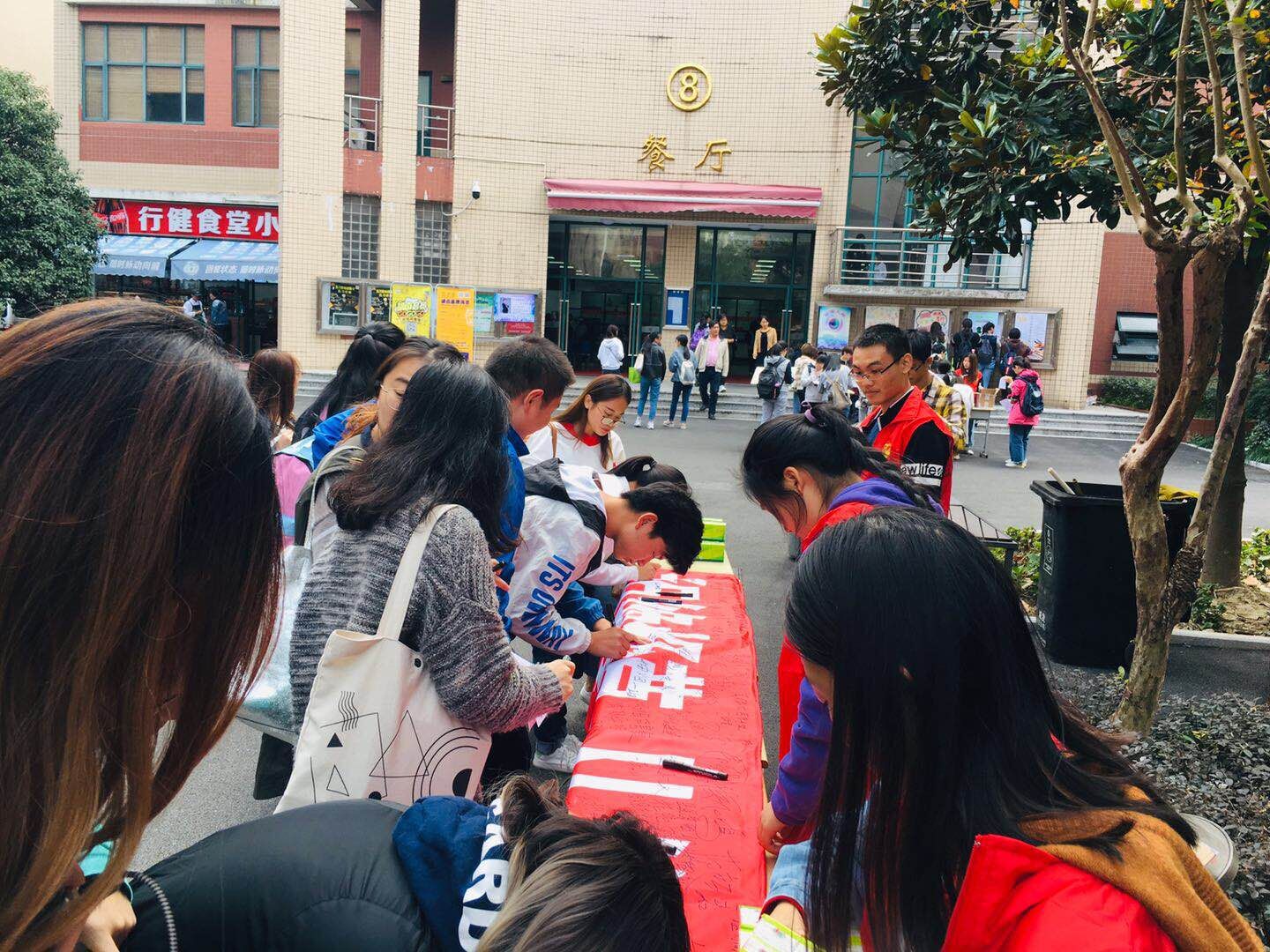 为配合校园的禁烟趋势,使同学们走在禁烟前沿,同时呼吁全体同学要知道吸烟有害身体健康,远离烟草伤害,也使我们的校园远离烟草的袭扰,提高同学们的健康意识,增强大家对无烟的意识。在辅导员蔡舜尧老师以及18级幼保班班委的组织下,于10月31日在校园内举办了“禁烟宣传签字”活动以及“禁烟知识竞答”活动。在此次活动中,行健师生们踊跃参与,在两个活动摊位前参与的同学们都排起了长龙。