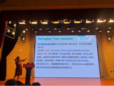 宣讲会由学前教育系主任李娜主持,对英国的教育体制做了分析,英国诺丁汉特伦特大学的建校历史、校园文化、专业特色等做了介绍。此外还结合了视频,使学生对该校及诺丁汉城市有了初步的了解和认识。最后,李主任就合作办学模式、语言要求、课程衔接、学费标准等情况,以及学生申请到国外交流的基本条件和要求做了介绍,希望对此合作项目感兴趣的学生能合理规划大学生活,通过多种方式开阔眼界、提升自我。