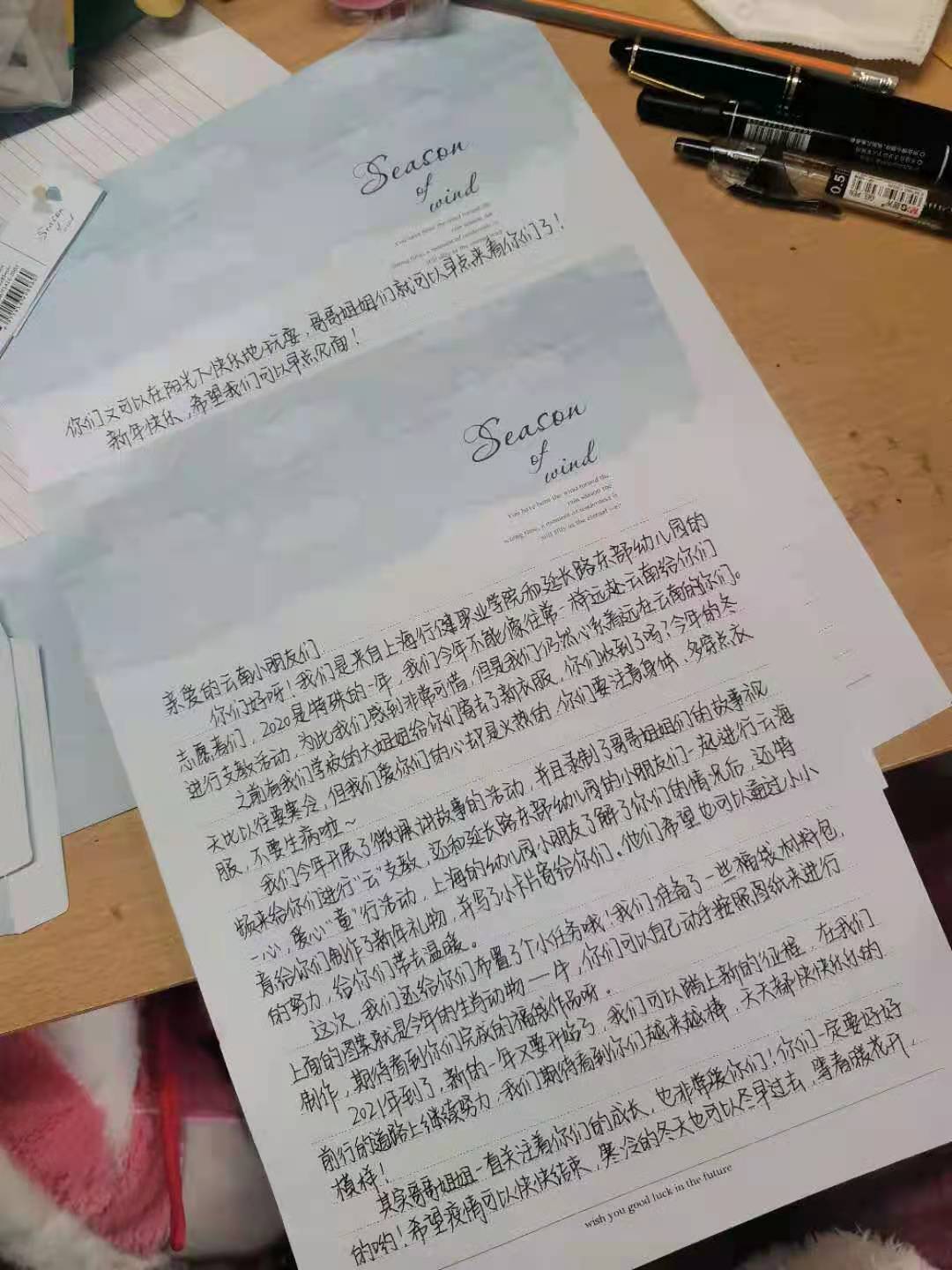 延长路幼儿园小朋友们与我们系大朋友们的爱心正在随着快递一路前行到达云南小朋友们的手中,希望他们可以和上海的小朋友们一样健康快乐成长。虽然疫情当下,我们没法前往云南,但我们仍旧心系云南,用不同的方式去帮助山区的孩子们。希望疫情可以早日过去,我们与云南山区的孩子可以早日相见。