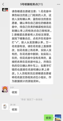 据龚紫云介绍,当时的小区志愿者是分部门执行任务的,有宣传、有调节等等。而龚紫云负责的则是信息方面,主要任务是询问每家每户的人数,并且进行统计,通知传达有关疫情的最新信息,将居民的问题或需求及时告知居委会,成为居民和社区之间不可缺少的的“传话筒”。