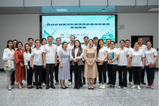 黄河科技学院的行政领导与骨干教师,随后参观了学前教育系的特色实训室,尤其对学前系新专业婴幼儿托育服务与管理实训室赞不绝口,表示这对他们正在实施的实训室具有较强的借鉴意义。