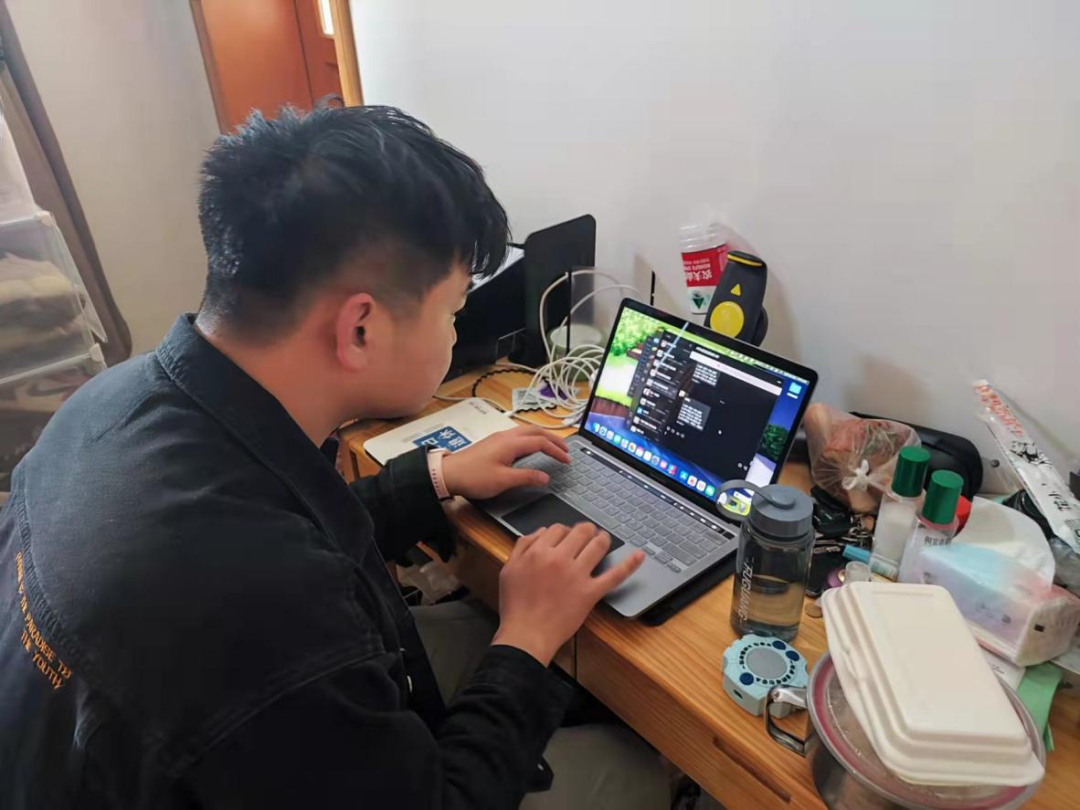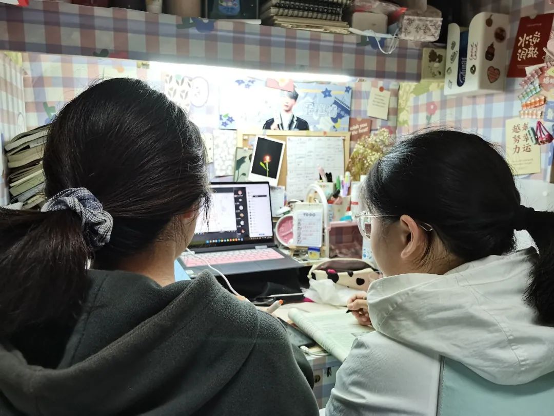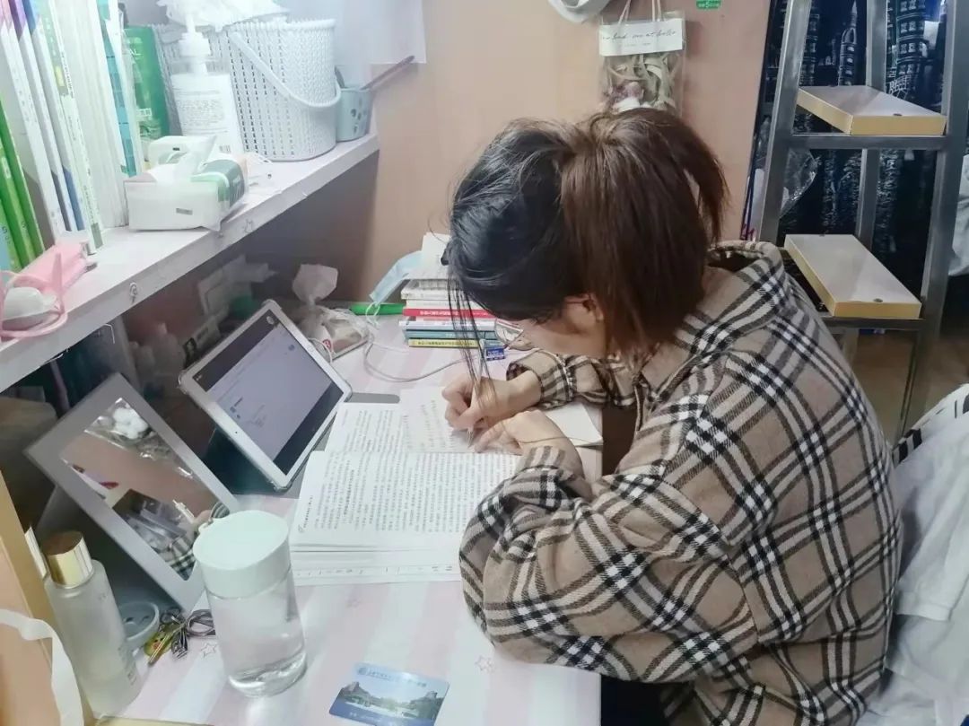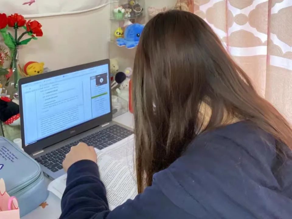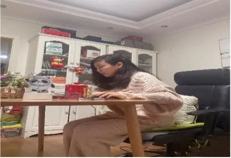 潘太健老师为保证线上教学的平稳开展,利用家里的柜子打造“家庭三尺讲台”,营造线上教学的“仪式感”。