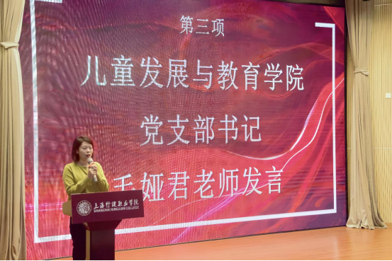 竞选演讲结束后,毛娅君老师上台讲话并对同学们提出希望。讲话中,毛书记首先肯定了21级学生干部对儿童发展与教育学院做出的贡献,并希望今后学生会成员要以学长学姐作为榜样,积极为同学服务,始终铭记青年的责任和担当,不断努力向前。积极拥抱新时代、对自己提出新的更高要求,不断自省自勉,不负期望,不负时代,不负韶华,做有理想、有担当、能吃苦的青年。