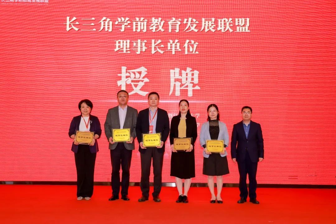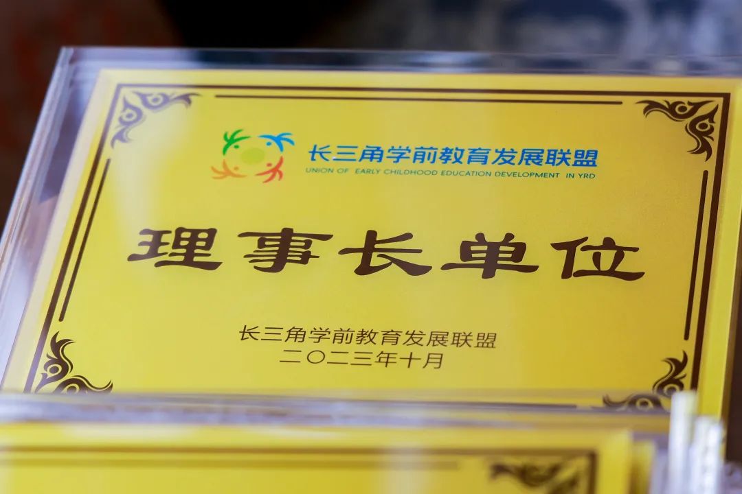 在研讨会前,举行长三角学前教育发展联盟理事长单位、副理事长单位和联盟单位授牌仪式,章卫芳副校长给副理事长单位授牌。