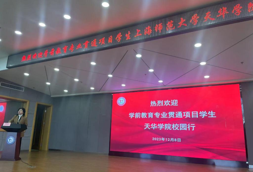 2023年12月8日,教育学院22级、23级高本贯通班学生在专业主任申海燕、辅导员蔡鹏和施伟荣、学生秘书卜艳婕等老师的带领下,前往上海师范大学天华学院参观校园,两校教师同时举行联合教研活动。