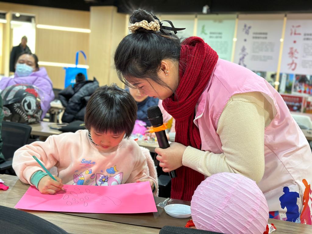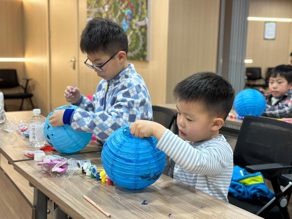 随后在志愿者们的帮助下,家庭们通力合作、默契配合,通过指尖上的艺术、巧手制作灯笼。你撑灯笼我绘画,你撕我贴,将花瓣一点点制作黏贴......成了现场一道道靓丽的风景线。