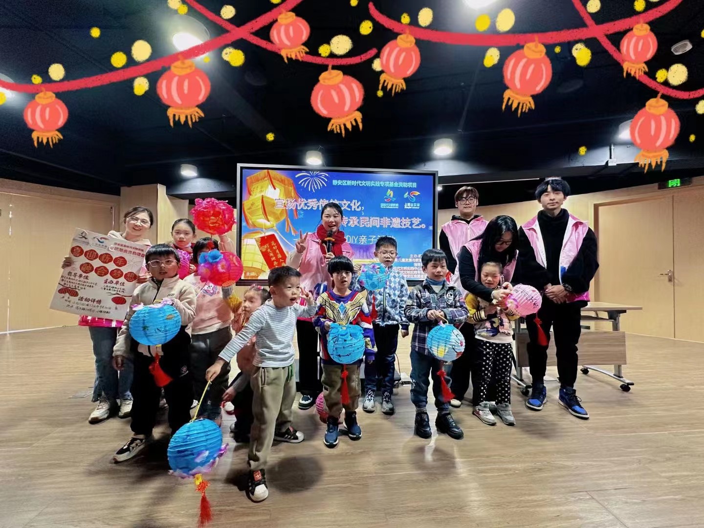 2023年12月23日,由静安区新时代文明实践中心办公室、静安新时代文明实践专项基金、静安区志愿者协会联合指导,星空电竞app下载安装苹果版儿童发展与教育学院申报主办的“促幼展风华”志愿服务项目---灯笼彩绘DIY亲子活动于彭浦镇高平路141号小镇驿站开展。