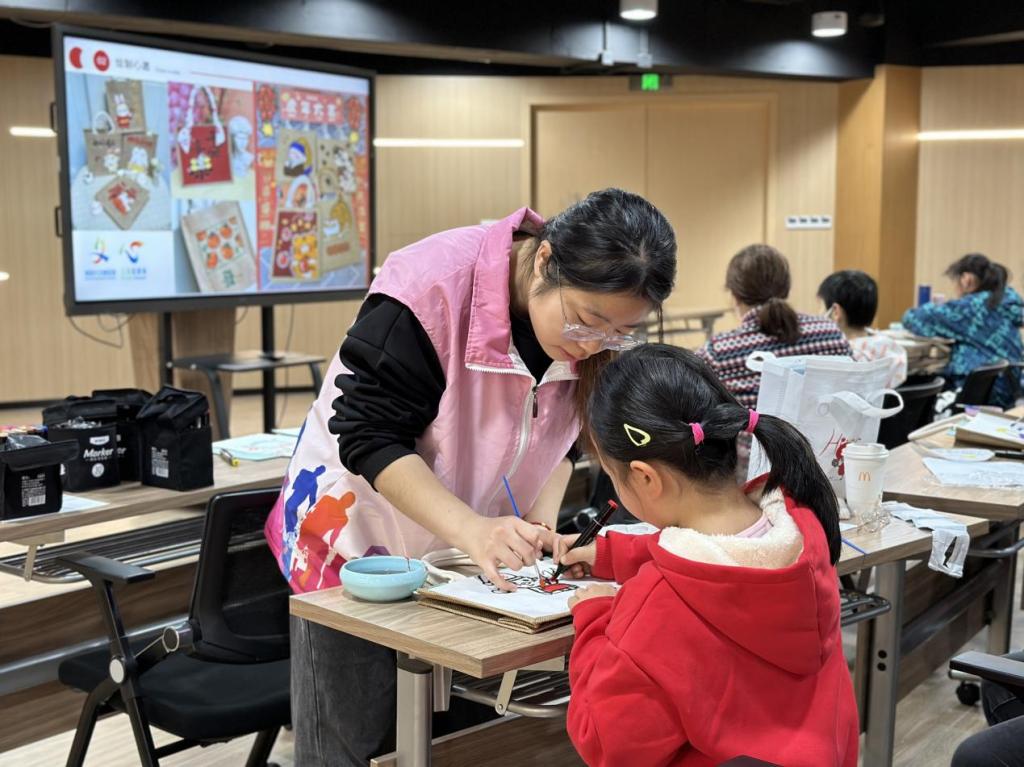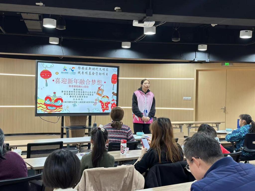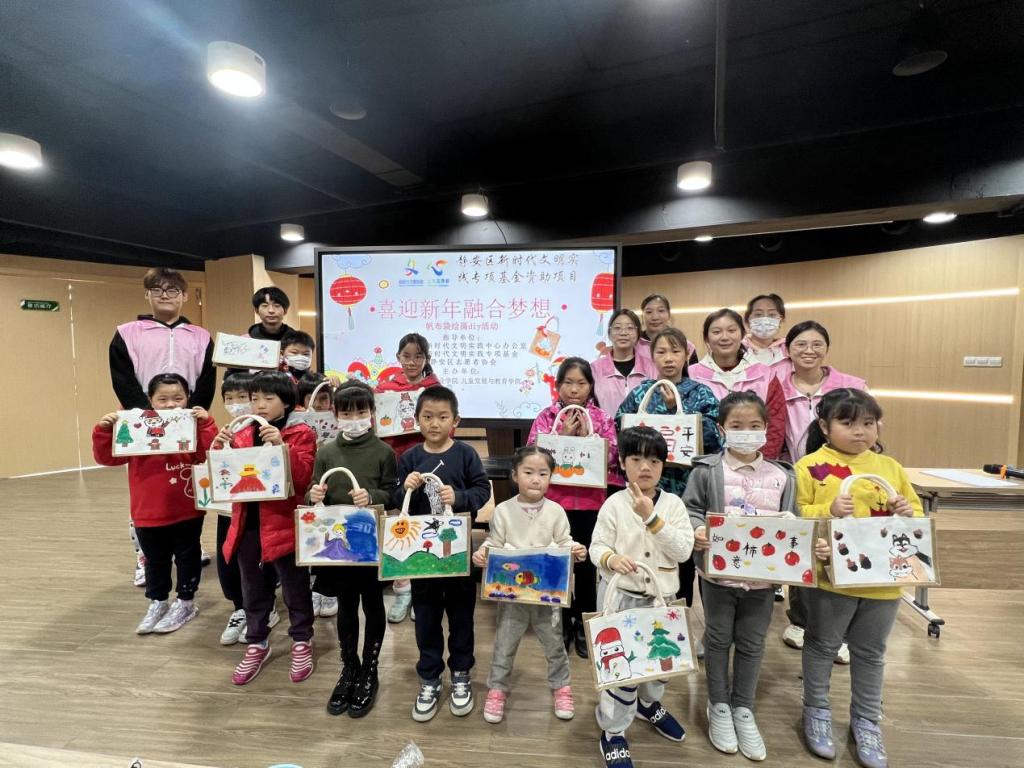 2023年12月30日,由静安区新时代文明实践中心办公室、静安新时代文明实践专项基金、静安区志愿者协会联合指导的星空电竞app下载安装苹果版儿童发展与教育学院申报主办的新时代文明实践和学雷锋“促幼展风华”志愿服务项目---“喜迎新年融合梦想——帆布袋手绘diy”于彭浦镇高平路141号小镇驿站开展。本次志愿活动以环保帆布袋为基底,通过手绘的方式,旨在传递环保理念的同时,提升小朋友的绘画能力并促进家庭间的亲子交流。