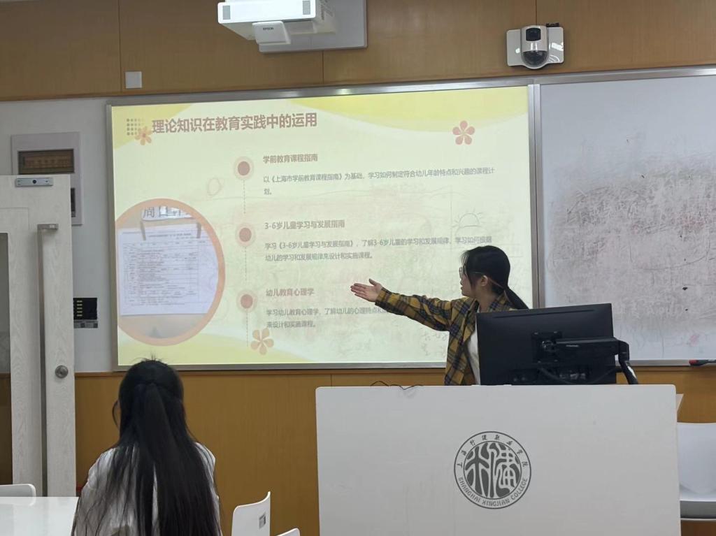 23学前贯通1班的吴雨霏是第二次参加教育实践,她表示:“短短两周的幼儿园观摩让我学会了很多,从一开始感觉有点局促,记不住孩子的名字,到后来能大方地在全班孩子面前讲一个故事,记住孩子的名字、爱好和性格”。22学前高本贯通班的孙思懿则通过三次教育实践的经历,总结了自己在专业理论学习和岗位技能上的成长和提升方向。