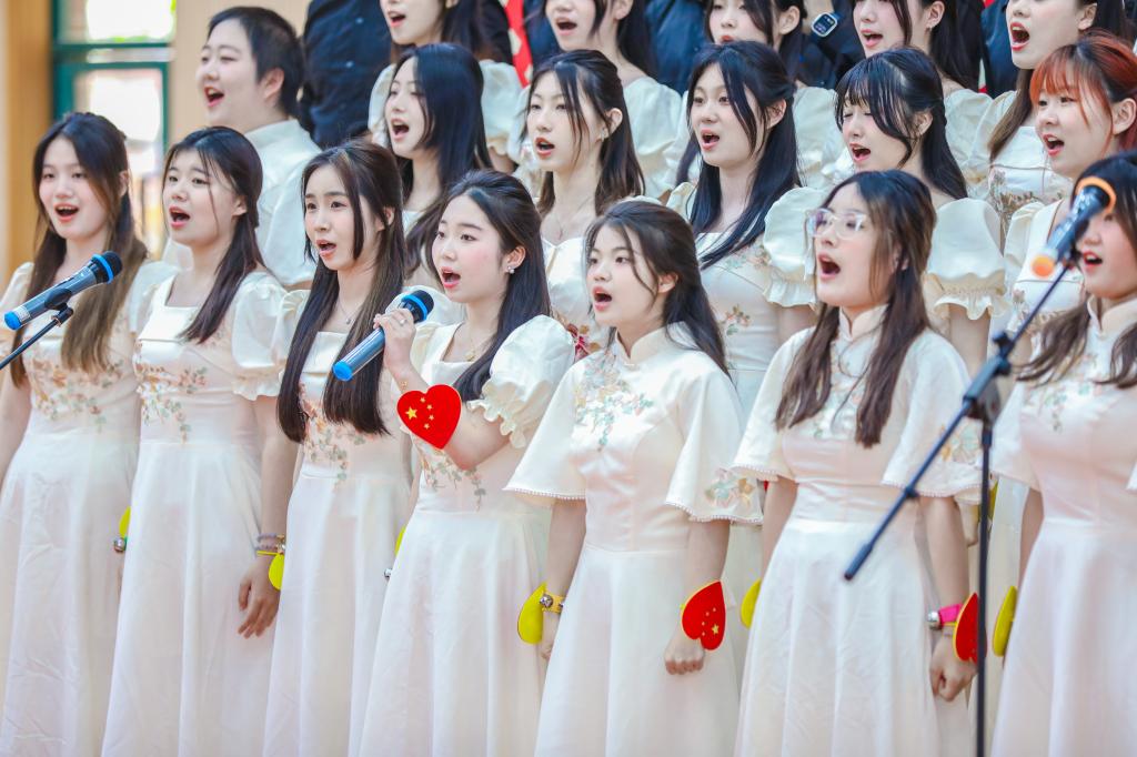当青春与歌声相遇、当激情在五四绽放,教育学院53名学生于2024年5月17日在体育馆共同演奏了《有我》和《灯火里的中国》,美妙的乐器声伴随着悠扬的歌声,点燃了同学们心中的青春之火,唱响了时代华章。