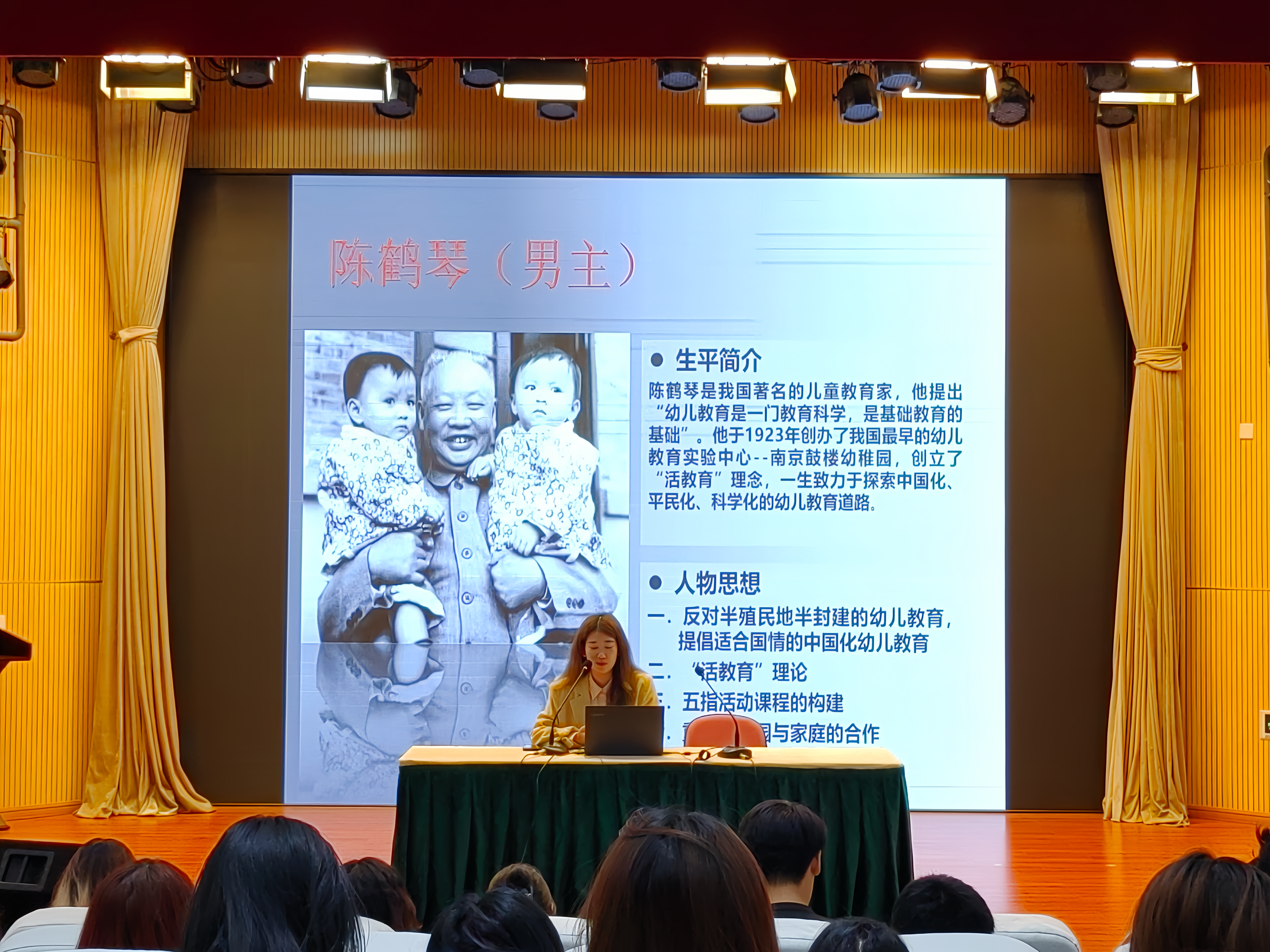 为帮助24级新生更好地适应大学生活、融入团组织,2024年10月21日,儿童发展与教育学院于1109组织开展团学教育活动。活动分为三个议程:分别是学院团总支书记周新雨老师介绍基础团务工作与安排、学院团学会主席周奕莹同学介绍团学会组织架构与职能、学院辅导员闫博老师宣传介绍学院正开展实施的“明德笃行”系列活动---陈鹤琴大师剧。
