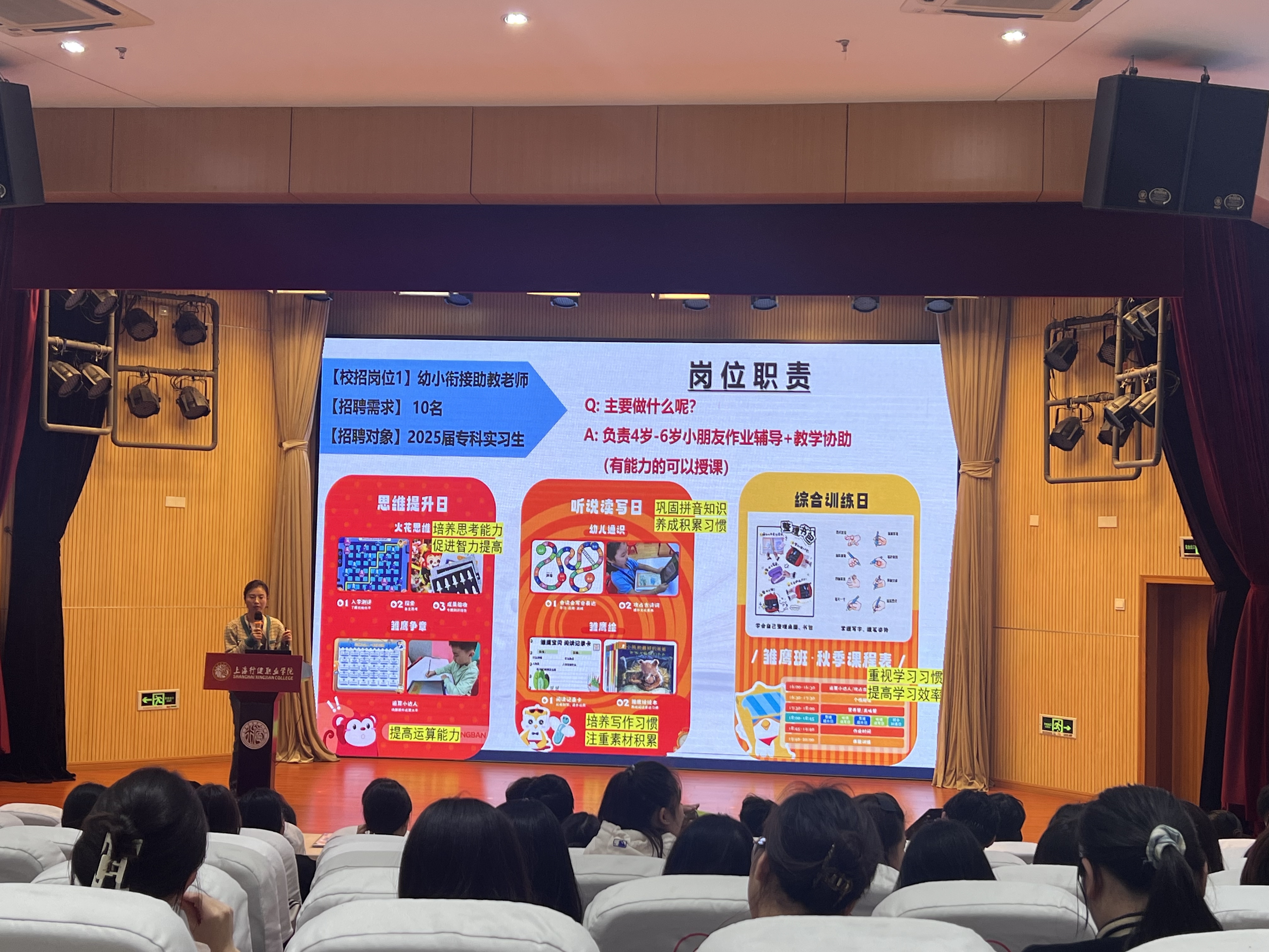 在宣讲会现场,文启优思对于招募的岗位有详细的介绍,其中包括:助教老师、大玩家、校区行政教务多个岗位。当讲到来自星空电竞app下载安装苹果版的优秀实习生代表时,学生更加聚精会神地听着。在活动结束后,他们纷纷表示对公司的发展前景和工作环境非常感兴趣,希望能够加入。也有许多学生表示,这次宣讲会让他们更加明确了自己的职业方向,也增强了他们对教育事业的信心和热情。