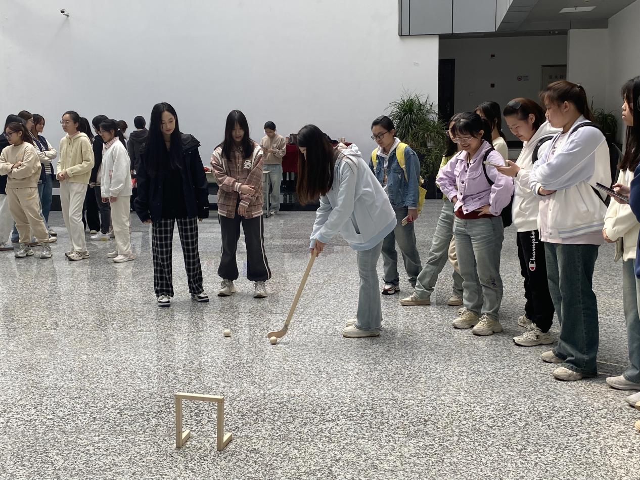 10月24日中午举行的捶丸比赛为大家带来了古代版的高尔夫体验。捶丸是一项讲究技巧与协作的运动,参赛同学们轮流击球、精准入洞。作为团体活动,大家配合默契,每当击中目标,成功的喜悦在每个人的脸上流露。这项活动既考验了协调性,也提升了团队合作精神。
