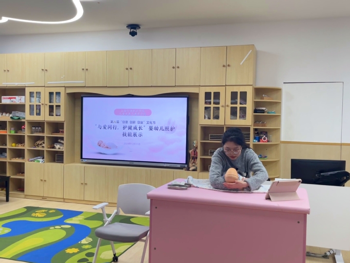 在学校第八届“创意·创新·创业”文化节的浓厚氛围中,儿童发展与教育学院于12月成功举办了“与爱同行护健成长”婴幼儿照护技能风采创意展示大赛。此次活动不仅是对学生专业技能的一次检验,也是“三创”精神在实践教育中的一次生动体现。