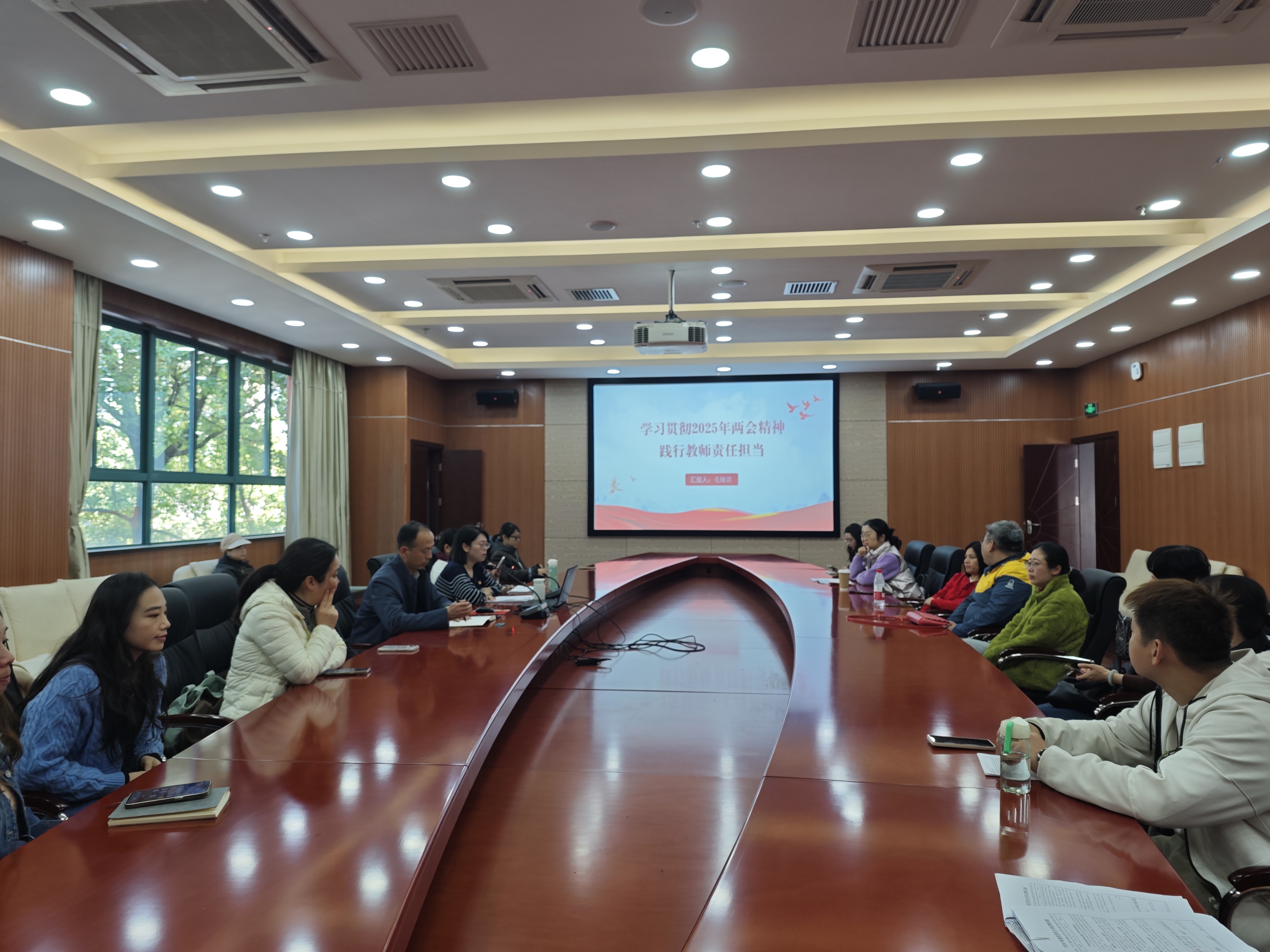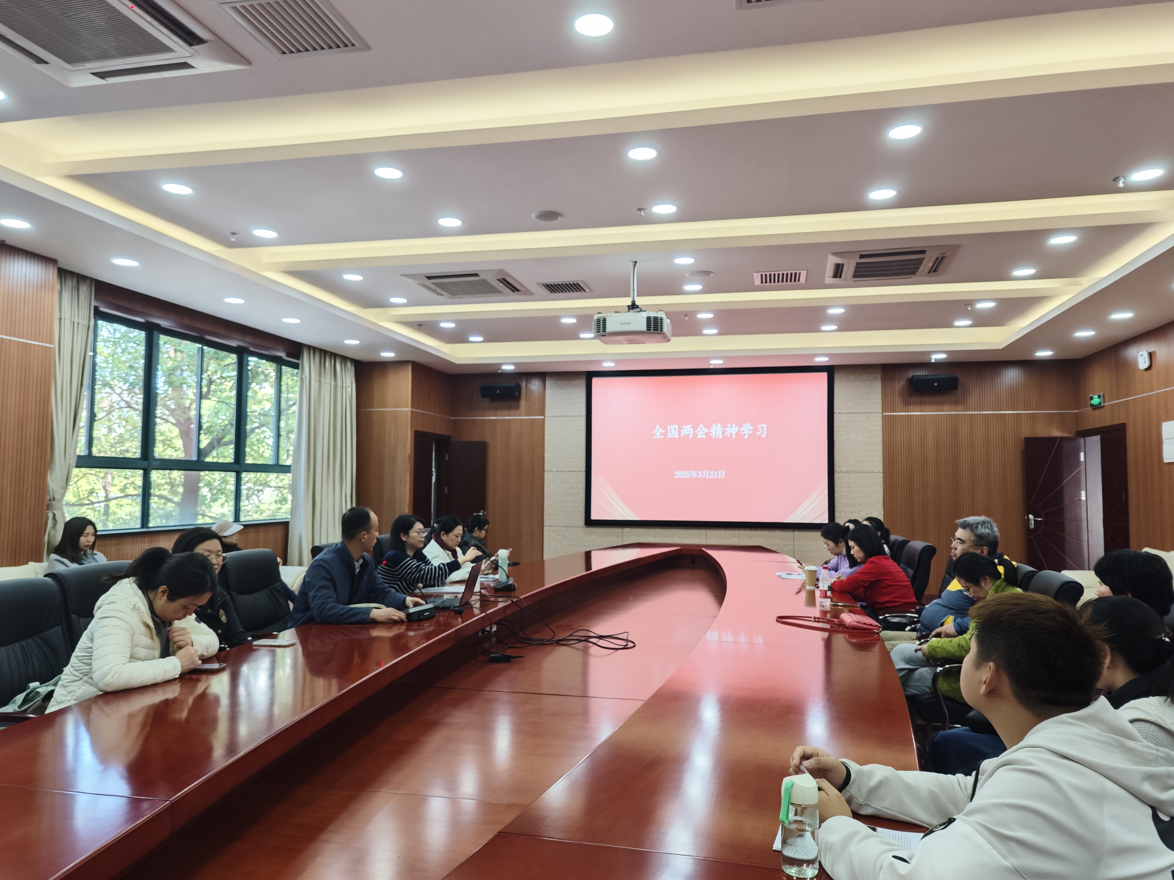 2025年3月21日,儿童发展与教育学院在敏行楼2212召开全国两会精神专题学习会。学院党支部书记毛娅君、院长孙波带领全体教师深入学习2025年全国两会精神。