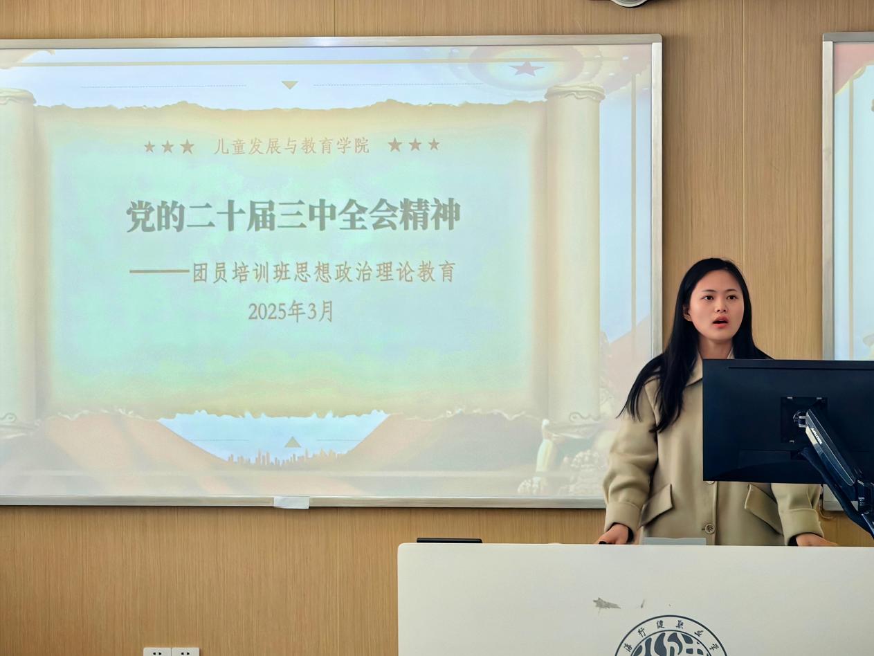 团员思想政治理论教育于2025年3月21日在3510教室展开,由教育学院团总支书记周新雨老师主讲。本次主题教育活动采用“专题授课+案例探讨+情景模拟”三维模式,团员们围绕“新时代教育工作者”主题展开热烈讨论。通过此次主题学习,团员培训班的同学们对党的二十届三中全会精神有了更深刻的理解,他们认识到自己作为社会一分子的责任与使命,并纷纷表示要将个人成长融入教育领域与国家发展大局中。