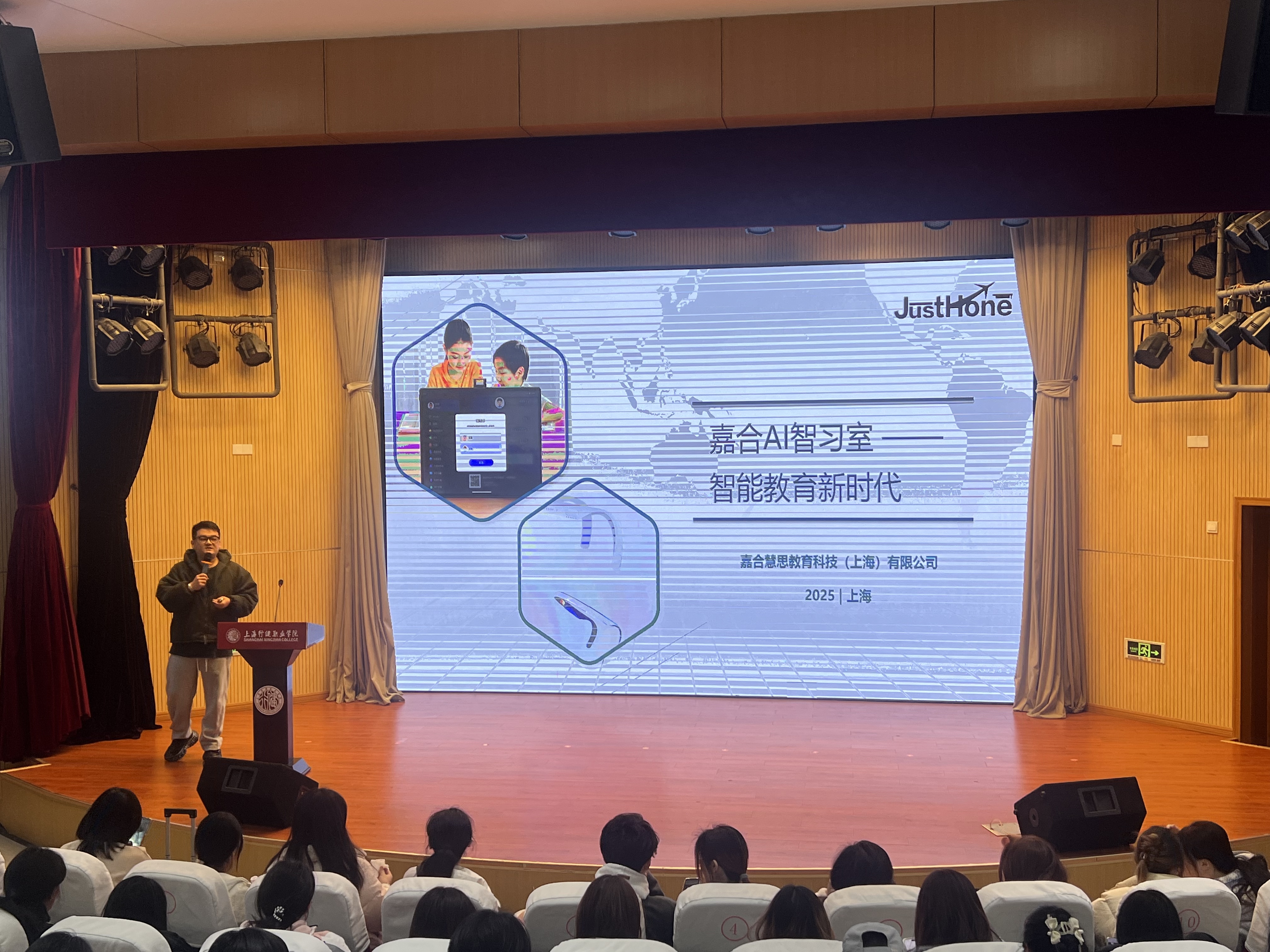 宣讲会伊始,企业负责人归老师从公司发展历程、业务布局及教育科技行业趋势展开分享。他介绍,嘉禾慧思深耕儿童教育领域多年,致力于将人工智能前沿科技与教育实践深度融合,旗下研发的智能教育产品已服务全国超千所教育机构。谈及行业前景时,归老师强调:“随着‘AI+教育’模式兴起,教育科技行业正迎来黄金发展期,专业人才需求持续扩大,这为青年学子提供了广阔的发展平台。”