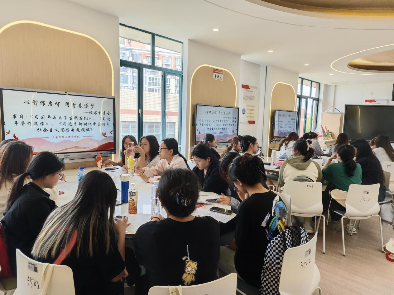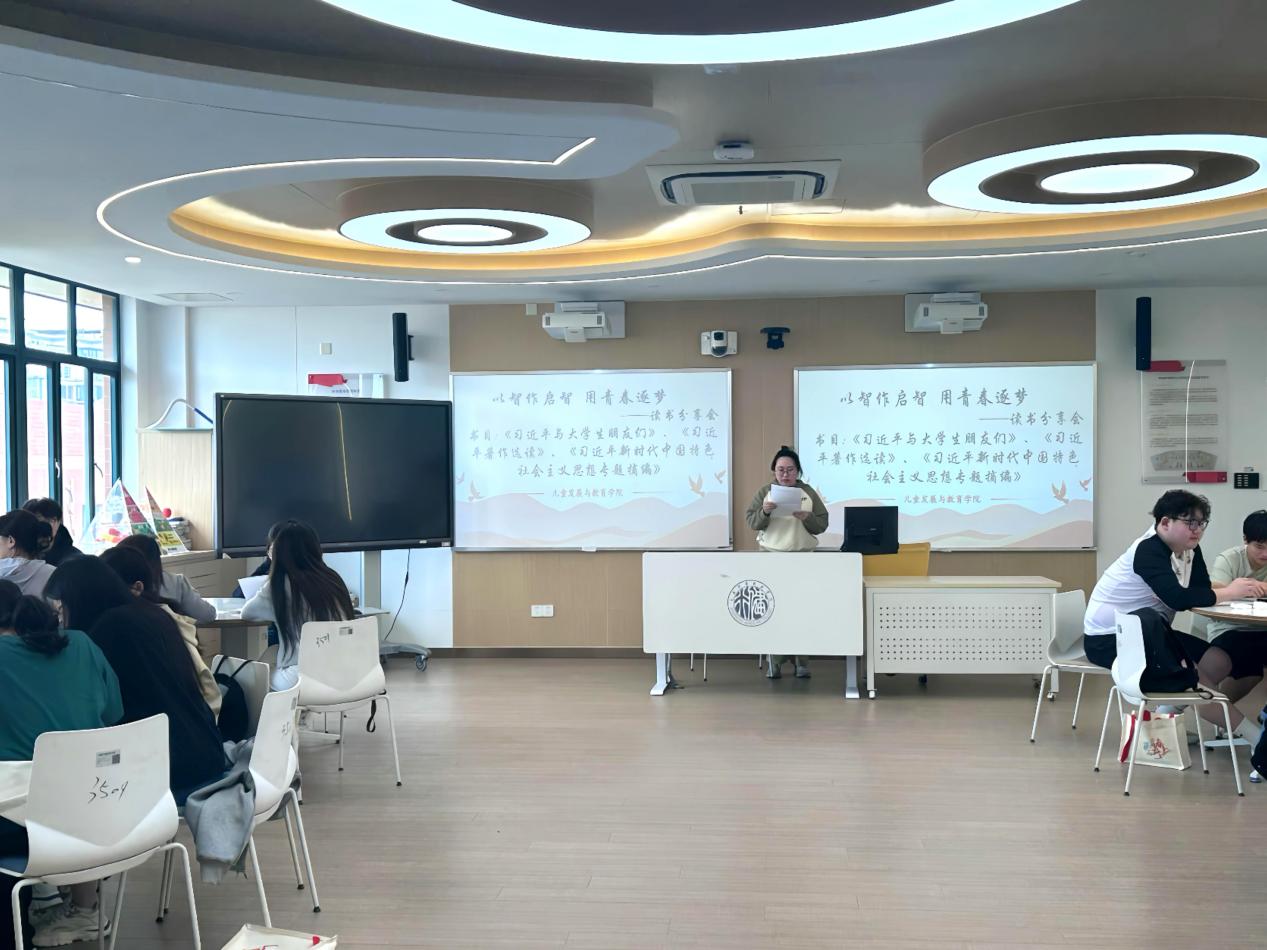 同日下午,团总支书记周新雨老师与两位团副林萱、沈佳璐共同组织开展了“以著作启智,用青春逐梦”读书分享会。活动中,同学们以班级形式分享了《习近平著作选读》、《习近平新时代中国特色社会主义思想专题摘编》、等著作的研读心得,深刻感受到习近平新时代中国特色社会主义思想的理论力量与实践指引,更在交流中坚定了“听党话、跟党走”的理想信念。作为新时代的青年,大家纷纷表示将以此次读书会为起点,做到学思用贯通、知信行统一。
