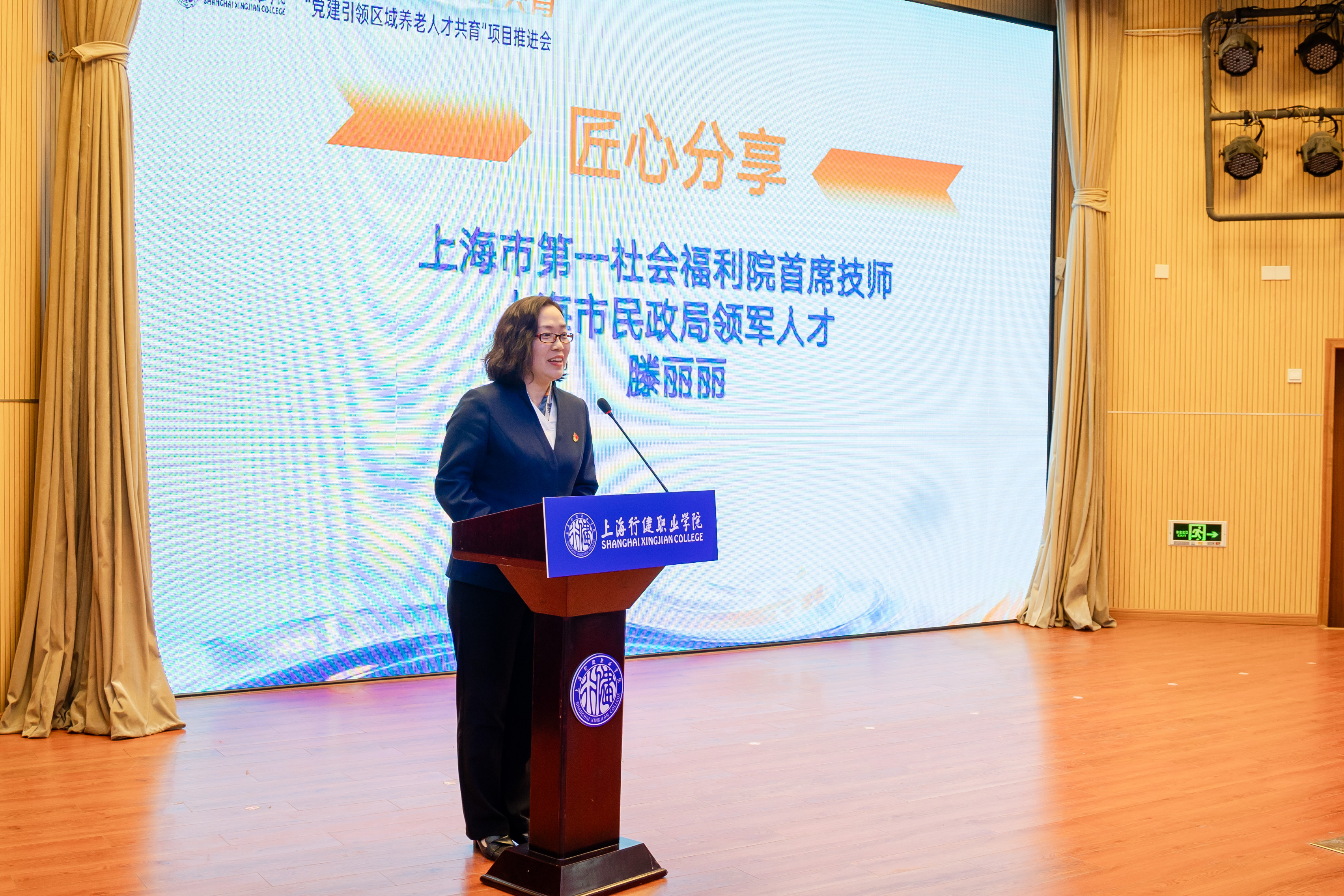 12月12日,学校携手政企校行多方,以“区域联动共建,养老人才共育”为主题,在1109会堂开展“党建引领养老人才共育”项目推进会。活动现场区教育局、区民政局、彭浦镇、合作企事业单位领导出席活动,社区老年居民与康养学院师生代表共同参加活动。