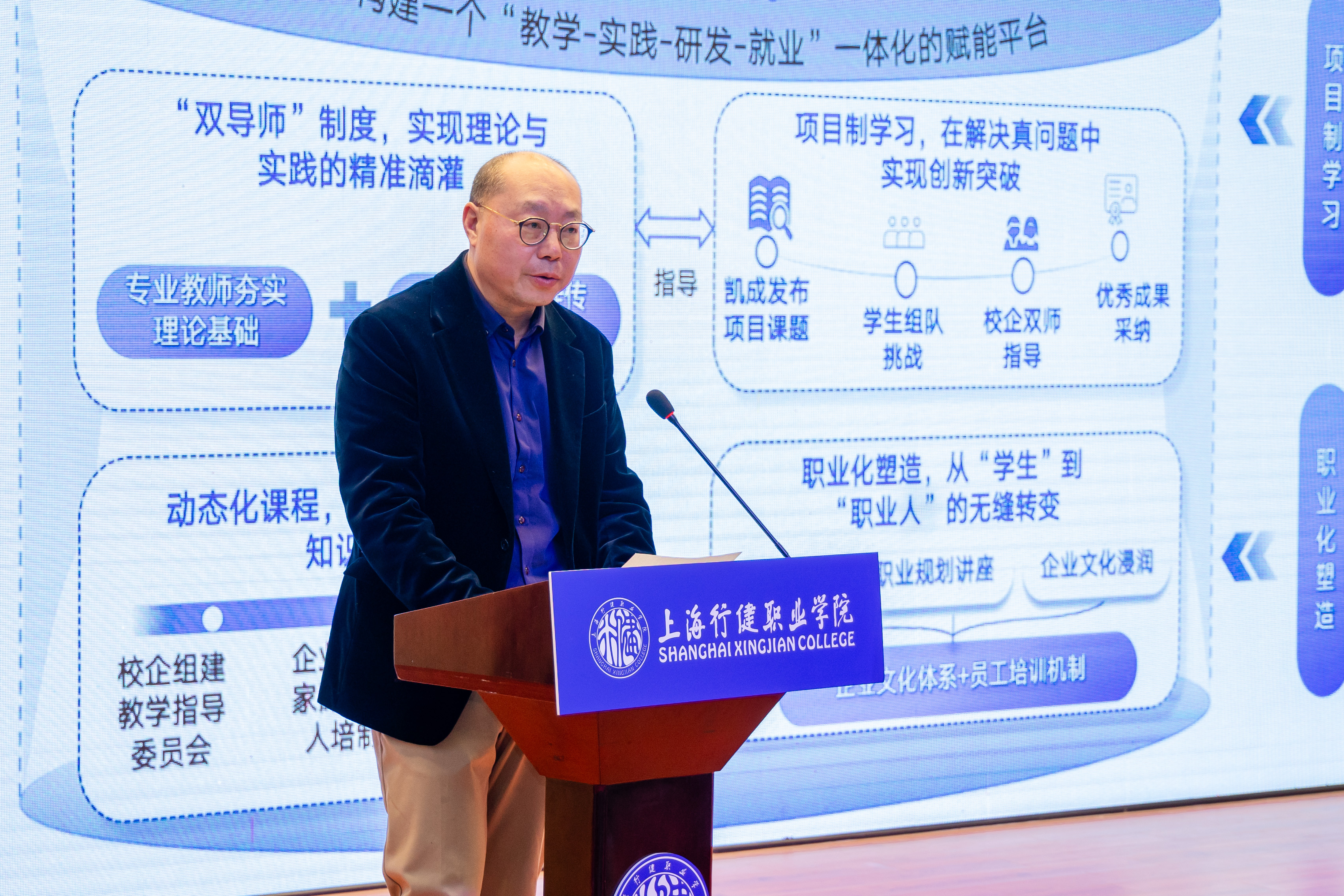 上海凯成控股有限公司人力资源部经理嵇春晖代表学校与凯成共建的“智慧康养产业学院”阐述了未来产业学院在养老照护星空体育网址入口方面的运营思路和具体措施。