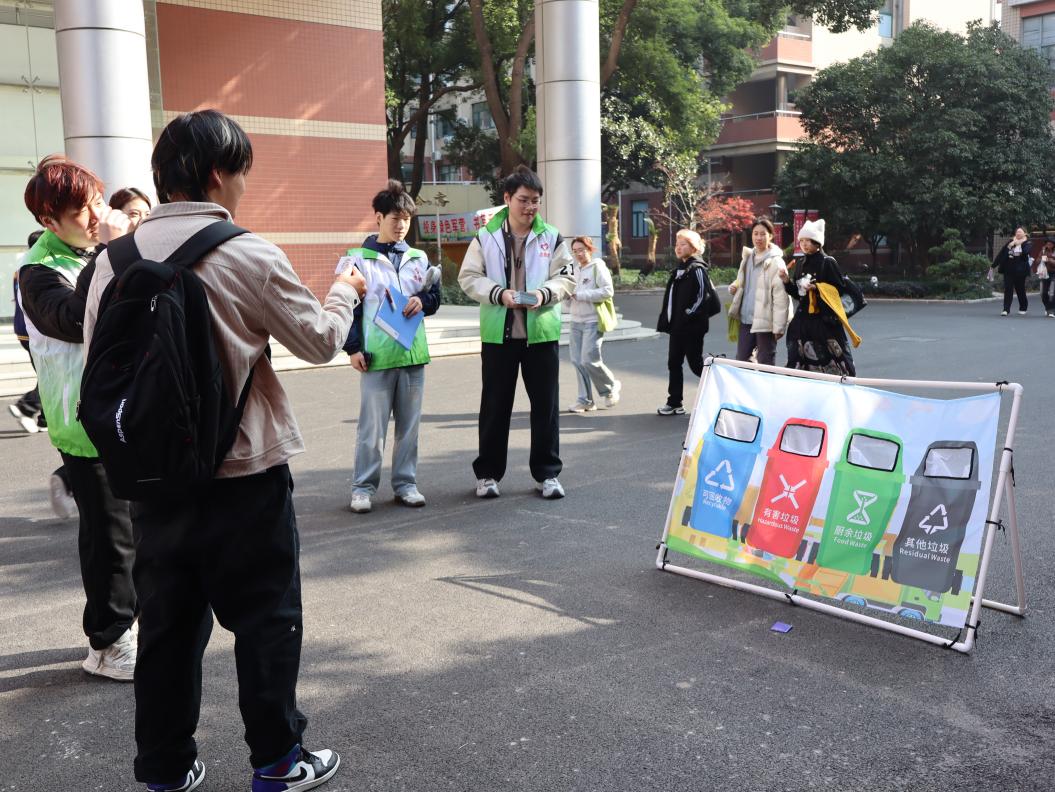 为积极响应校园垃圾分类倡议,扎实推进绿色文明校园建设,12月12日,康养学院在校园的知行楼、思行楼及西区学生宿舍区域,集中开展“垃圾分类我先行”主题实践活动。活动以趣味互动为核心载体,让师生在轻松氛围中深化垃圾分类认知,现场参与人数超200人,掀起校园环保实践热潮。