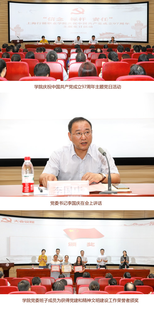 7月5日,学院党委开展庆祝中国共产党成立97周年主题党日活动。学院党委书记李国庆发表讲话。活动由学院院长黄群主持,党委副书记李越,副院长章卫芳,工会主席季淑惠和支部党员共120余人参加。