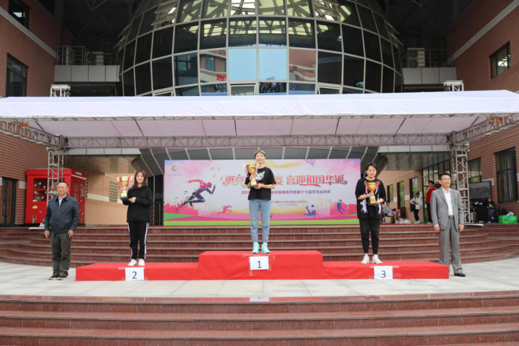 本届运动会共设10个大项,其中个人项目7项,团体项目3项。24个队伍参加,参与学生2100人次。同学们在比赛中挑战极限、超越自我、享受快乐。经过一天的激烈角逐,各项目的冠、亚、季军均已产生,尤为抢眼的是影视多媒体唐新骄同学以11秒37的成绩打破男子100米校记录;17学前张梦情同学已9.7米的成绩打破女子实心球校记录。根据组委会公布的得分统计,男子团体冠、亚、季军分别由信机系的机电、网络、汽车专业获得;女子团体冠、亚、季军由18学前、外语系英语、17学前夺得。