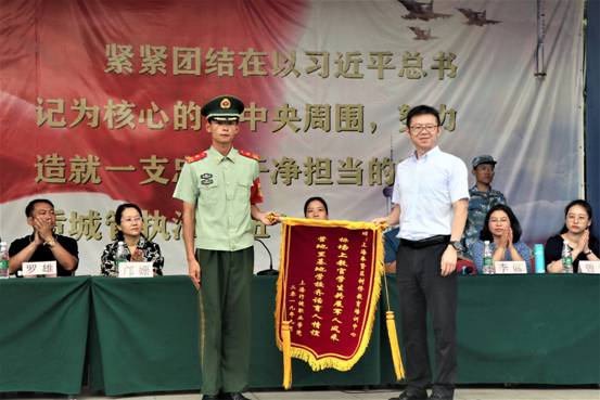 院长黄群为军训基地赠送锦旗并作总结讲话。黄院长对新生的军训成果予以肯定,并欢迎新生加入行健大家庭,期待新生以良好的精神面貌,在未来的三年里收获丰硕的成果。同时,他也向同学们提出五点要求:一是立志。黄群院长要求新生们做到“理想坚定、信念执着、不怕困难、勇于开拓、顽强拼搏、永不气馁”。二是惜时。他告诫全体新生要珍惜时间,学好专业知识,培养责任心,提高写作能力、专业技术能力。三是求真。他希望同学们求真学问,积累真才实学,为社会服务。四是务实。他鼓励新生努力成为技能型人才,弘扬工匠精神。五是健体。强健的体魄不仅是事业发展的基础,更是勤学上进、意志品质的体现。学院为新生们提供了运动设施和场所,希望新生在强身健体中锤炼意志,提高抵抗困难和压力的能力,身心健康,茁壮成长。