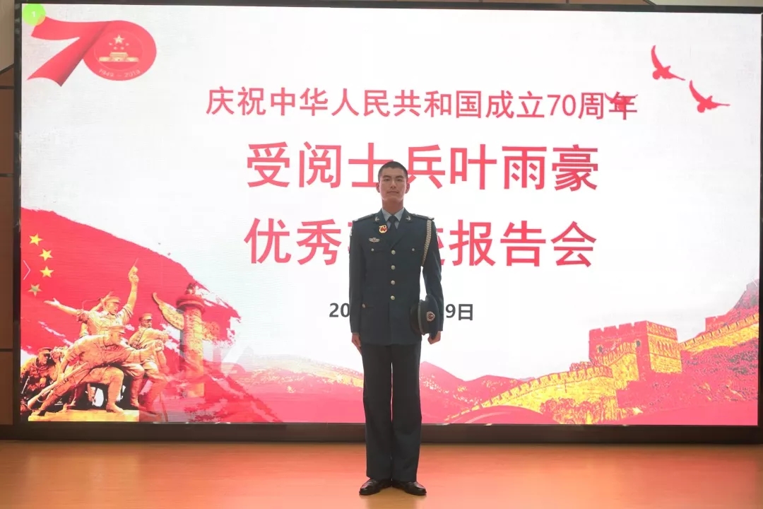 为进一步激励全院青年学子厚植爱国情、坚定强国志、实践报国行,用奋斗书写青春华章,10月29日,学院举办庆祝中华人民共和国成立70周年受阅士兵叶雨豪优秀事迹报告会。身着阅兵服,佩戴70周年阅兵纪念章的叶雨豪端正挺拔、英姿卓立,讲述了他退役后再度热血应征,阅兵村敢于挑战淬筋炼骨,表现优异评上“先进排面”,最终梦圆天安门的国庆大阅兵故事。一幅幅背景照片:破洞的手套、磨坏的军鞋、滴水的衣袖、身上的累累伤痕……见证了新一代军人的坚毅与担当。一段段视频短片:烈日下正步铿锵,刺刀寒光四射、劈枪整齐划一,百人行进如一人……彰显了后备劲旅“召之即来、来之能战、战之必胜”的钢铁意志。受阅士兵叶雨豪的爱国情怀、坚毅品格和自信力量深深打动了在场师生,聆听报告过程中多次响起热烈的掌声。