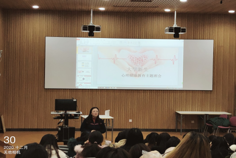 李鹏老师首先引用世界卫生组织对健康的定义,让同学们了解到健康包括身体健康和心理健康两个方面。通过PPT讲解,她向同学们详细展示了健康标准,使同学们对健康有了更深一步的了解。李老师根据调查数据向同学们讲述大学生的心理状况及相关诱因,用幽默风趣的语言叙述自己的见闻,与同学们互动,了解同学们的短期目标和长期目标,引导同学们树立切合实际的目标。最后,李老师和同学们分享了一些“与朋友‘话’疗”、“保持高度自信”“学会换位思考”等自我心理调节和人际交往的小技巧,使同学们受益匪浅。