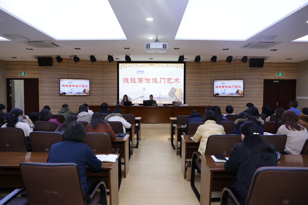 张政委从胸有成竹的基础、有的放矢的前提、精益求精的渠道、画龙点睛的技巧四个方面入手作了“浅谈写作这门艺术”的报告。她提出写作要“站在天安门上看问题,站在田埂地上找感觉”,启发大家在写作时要有高度的站位、踏实的体验。整场报告妙语连珠、引经据典,从自身工作经历出发,使用幽默而富有感染力的语言,深入浅出、通俗易懂。