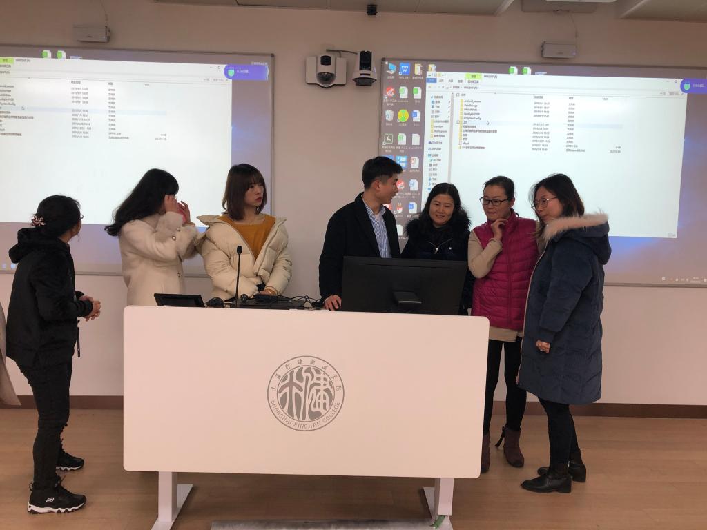 为了让“智慧教室”在教学中真正发挥智慧之功能,使教师熟练使用“智慧教室”的具体操作流程,1月16日上午,信息中心和智慧教室的技术人员为商务外语系教师开展了专题培训。