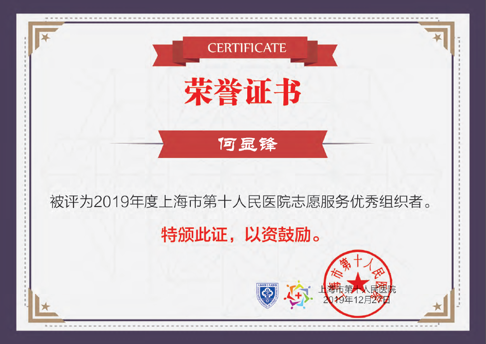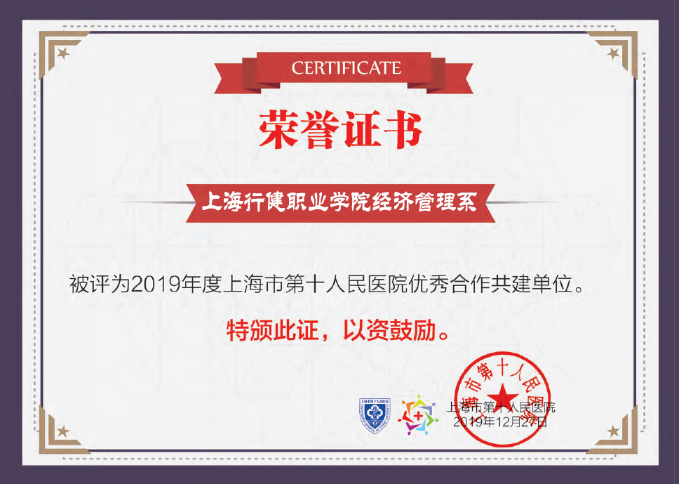 近日,星空电竞app下载安装苹果版经济管理系被评为2019年度上海市第十人民医院优秀合作共建单位。我院经管系团总支书记施伟荣老师、学生会志愿者部部长何显锋同学两人被评为2019年度上海市第十人民医院志愿服务优秀组织者。