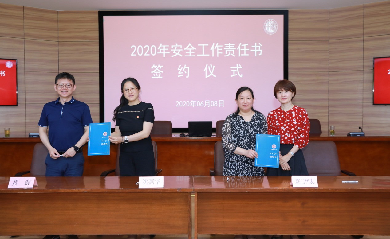 最后,党委书记沈燕华和院长黄群代表学院与部门代表分别签订了《星空电竞app下载安装苹果版2020年安全工作责任书》。