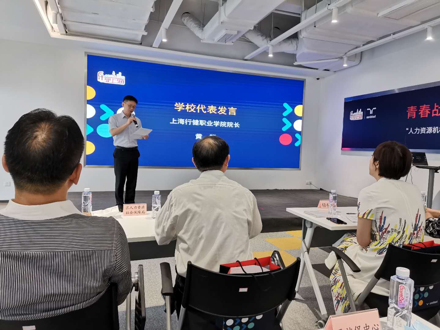 6月29日上午,由静安区人社局指导,全球最大的人力资源服务公司之一的任仕达集团发起倡议的“静安区人力资源机构助力大学生就业联盟”成立大会在新理想大厦举行,区委常委、副区长刘燮出席,区人社局局长王光荣、副局长汤虹,区内相关人力资源机构的相关负责人参加活动,学院院长黄群、学生处处长孙波受邀参会。