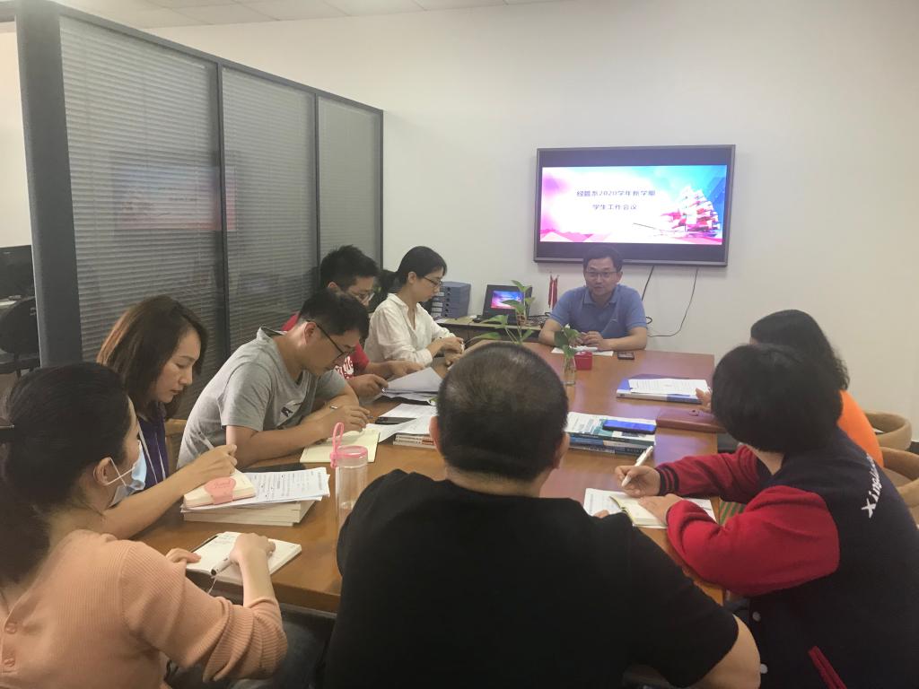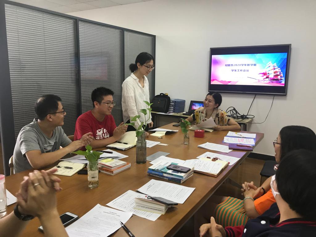 9月16日中午,经管系组织开展2020学年新学期学生工作会议。系主任严威、党支部书记孙天慧、团总支书记施伟荣、学生事务秘书陈微微以及全体专兼职辅导员参加会议。