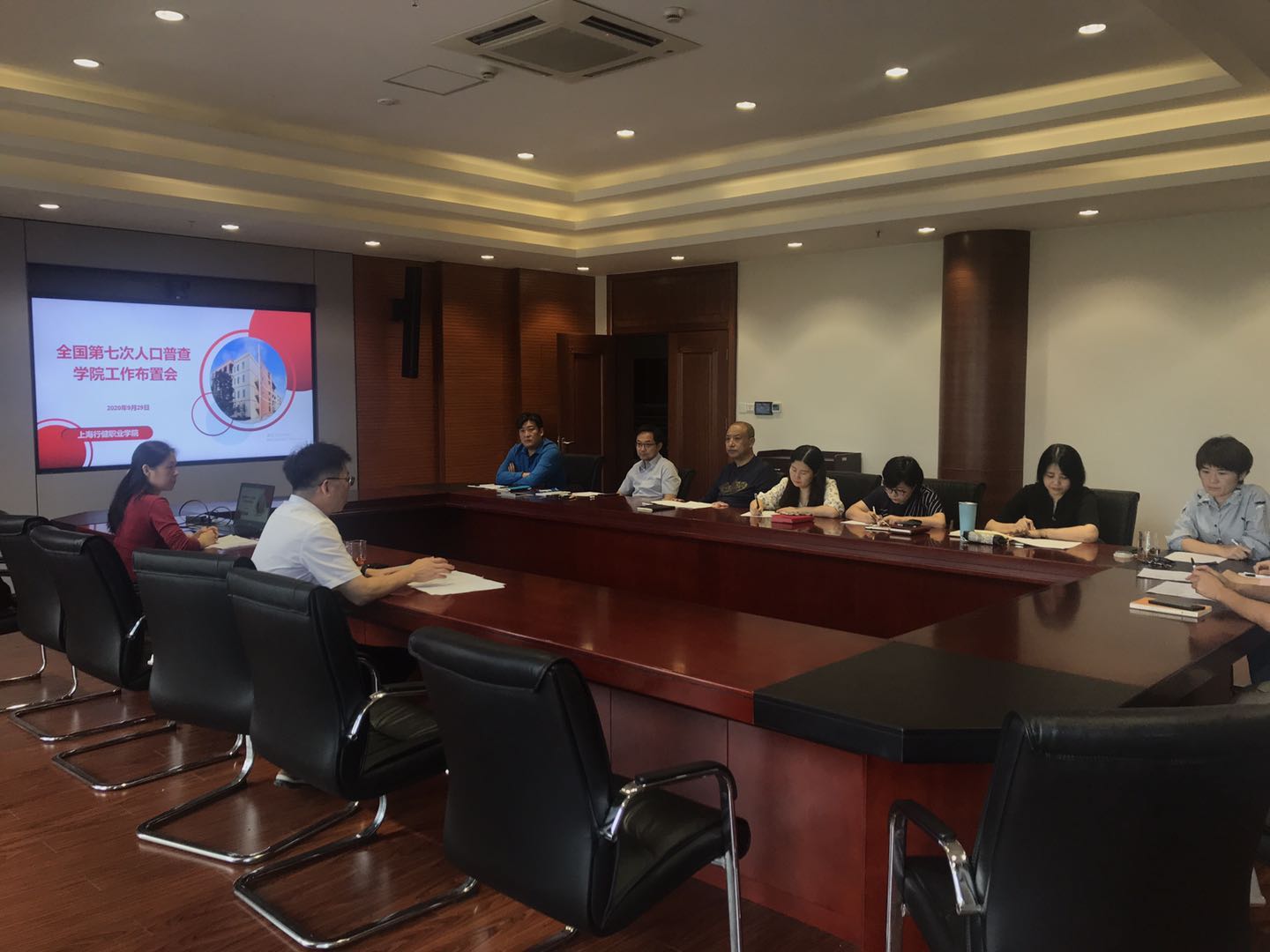 9月29日上午,学院召开了“全国第七次人口普查”工作布置会,黄群院长参加会议并作讲话。会议布置了我院完成本次人口普查工作的安排和要求。9月中旬,接到上海市教委关于转发《国务院第七次全国人口普查领导小组办公室教育部关于做好第七次全国人口普查工作的通知》的通知后,学院高度重视此项工作,先期进行了宣传动员、情况摸排。按照属地化管理的原则,我院此项工作主要按照静安区彭浦镇的统一安排进行。院长办公室安排专人对接,参加培训,学习了第七次全国人口普查的政策导向、普查目的意义、普查内容、普查工作流程和方式方法等。黄群院长在讲话中强调,要高度重视人口普查工作,扎实推进,保证普查数据质量,同时要将本项工作作为学院法制校建设的一部分,广泛进行宣传动员、开展法律法规教育。