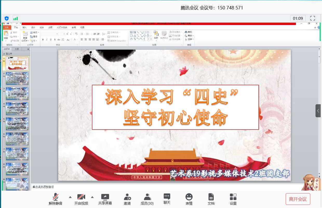 为更好地推进“四史”学习教育,学系从班级和团学会两处着手,制定了详细的实施方案,推动形成上行下效、整体联动的教育氛围,确保学习教育落到实处。活动期间,应用艺术系依托各班级和团学会先后举办了“四史”教育主题班会、“四史”主题云团日、“四史”线上学习教育、“红色圣地云参观 革命思想共感怀”主题教育以及网上重走长征路知识竞赛等活动,全系学生参与其中。在此过程中,同学们围绕“四史”学习教育、青年成长与职业发展、“四史”精神的激励作用等内容交流了学习体会。