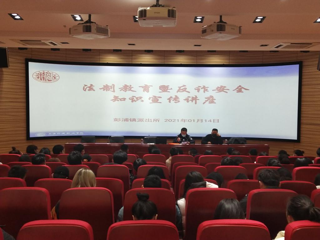 为进一步增强我院学生反诈安全意识,及时了解相关的法律法规,1月14日中午,学院后保处特邀彭浦镇派出所夏冰和施睿晰两位警官在敏行楼2113室举办法制教育暨反诈安全知识宣传讲座。大学生平安志愿者及学院学生共计120余人参加。讲座由后保处董国勋老师主持。