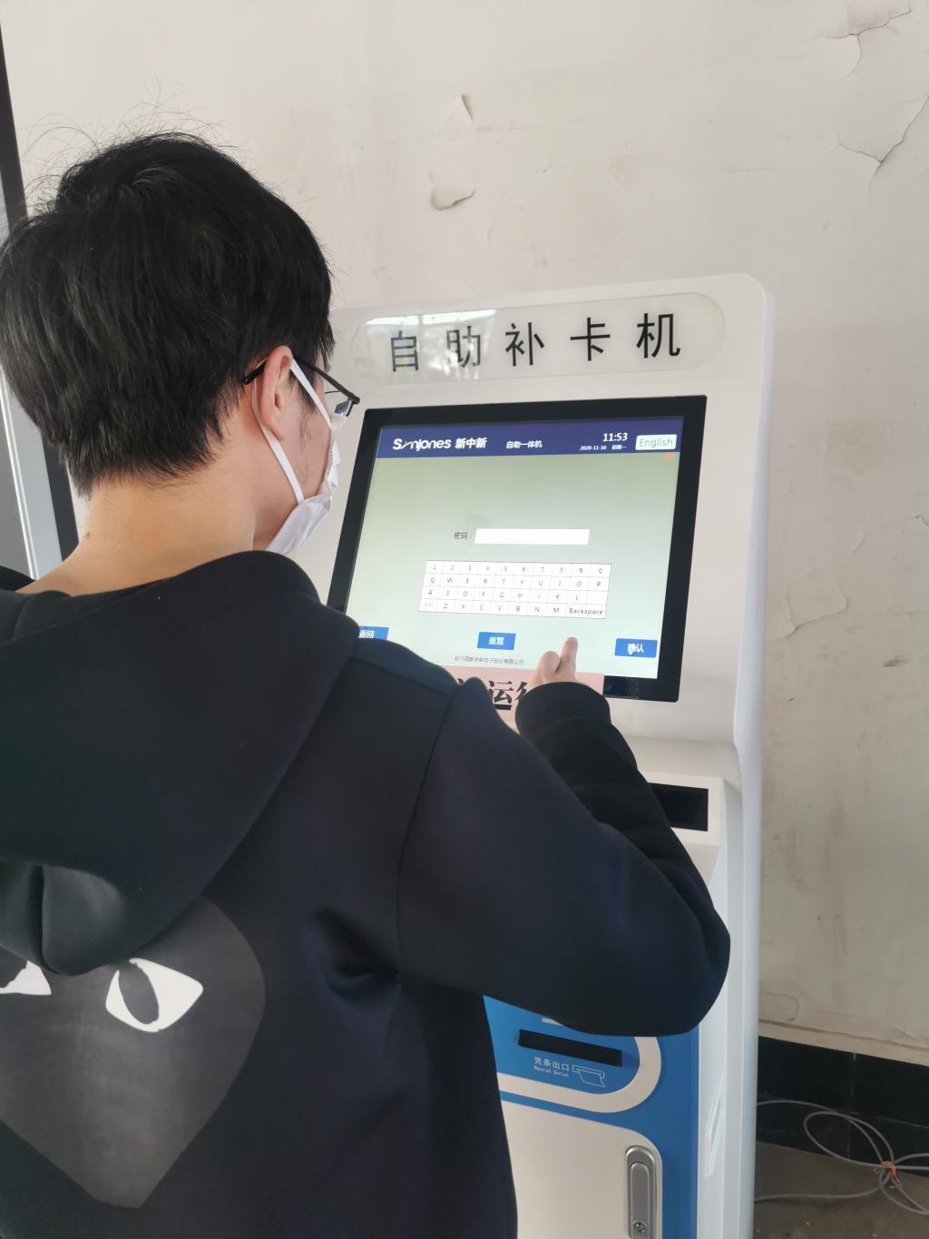 此次自助补卡机的投入使用,进一步方便了学生日常补卡。自助补卡机每天工作时间为7:00—22:00,保证了学生一卡通丢失或损坏时能够及时补办。该服务投入使用以来,受到广大学生的欢迎。目前自助补卡机设备运行稳定,设备从启用至今有补卡人次近千次。