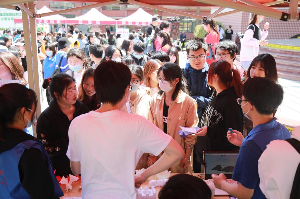 台下的互动型社团也大展身手,各显神通。各个摊位热闹非凡,形式多样,内容丰富。游戏充分结合社团特色,极大地调动了同学们的活力与热情。