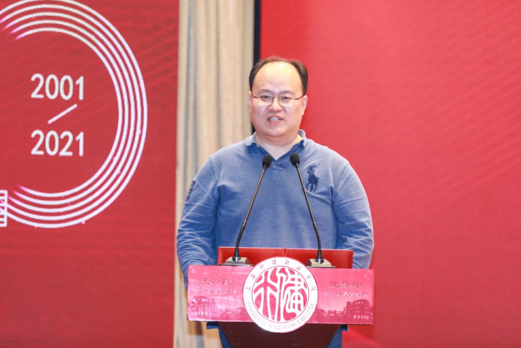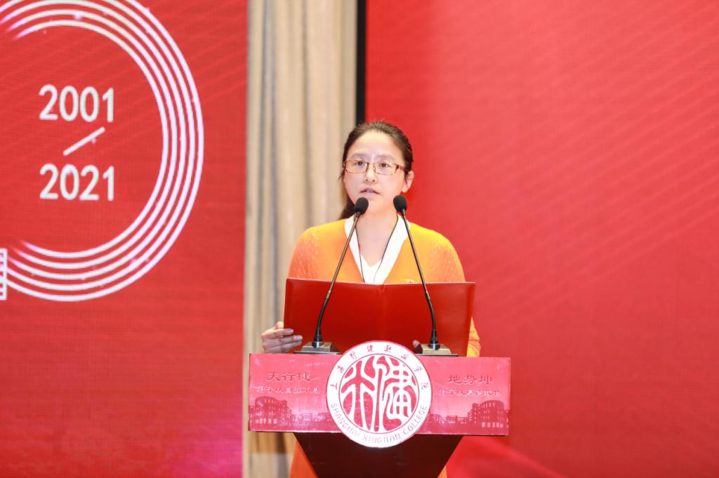 沈燕华书记在致辞中回溯了学院坚持立德树人的办学历程。20年来,学院共获得九届上海市文明单位和上海市文明校园称号,多次蝉联上海市安全文明校园、上海市花园单位、上海市志愿服务先进集体,多次获得区先进基层党组织、五星级党组织、区先进职工之家称号。