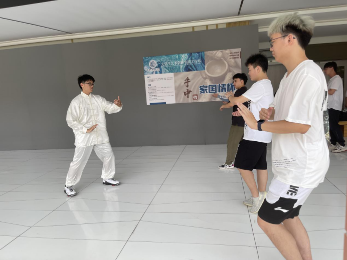 活动中,严晨亮教练首先给大家简单介绍了太极拳的相关知识,包括太极拳的起源和发展,太极拳是中华传统武术的精华,是国家级非物质文化遗产,太极拳作为武术的重要组成部分,历史悠久,博大精深,是中华民族的瑰宝。随后,他还为同学们展示了“26式陈式太极拳”,起手推掌间行云流水,现场同学们掌声不断。讲解后,严晨亮教练现场手把手将“揽雀尾、云手、单鞭、提手上势、白鹤亮翅”等多个分解动作教授给大家。他强调,学习太极拳要静心用意,呼吸自然,练拳时思想要安静集中,专心引导动作,呼吸平稳,深匀自然。大家谨记教练的指导,精神高度集中,动作整齐,拳掌劈勾刚劲有力。